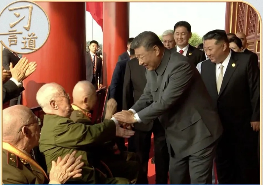 紀(jì)念中國(guó)人民抗日戰(zhàn)爭(zhēng)暨世界反法西斯戰(zhàn)爭(zhēng)勝利80周年大會(huì)開(kāi)始前,習(xí)近平總書(shū)記登上天安門(mén)城樓時(shí),同抗戰(zhàn)老戰(zhàn)士老同志代表親切握手,向他們表示崇高敬意。